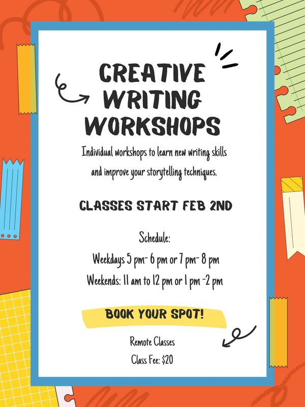 Each class combines short lessons, guided writing prompts, group discussions, and opportunities for feedback. You’ll learn new techniques, write creatively in real time, and share in a supportive space.